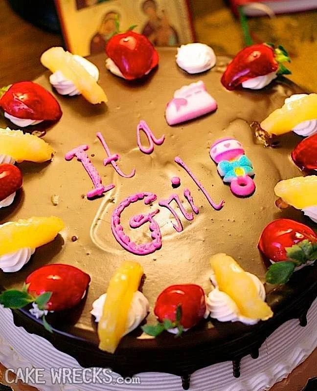I've often thought the "sex-reveal cake" trend was fraught with peril, and today's wreck is a good example of why.
